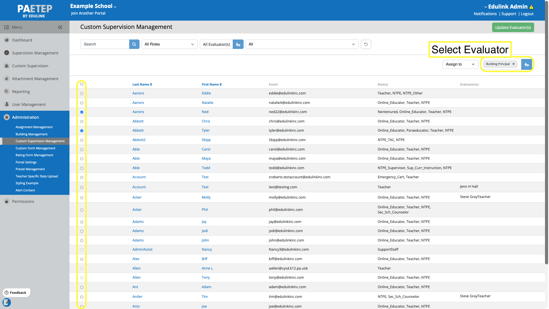 How to assign an evaluator (Custom Supervision Management)